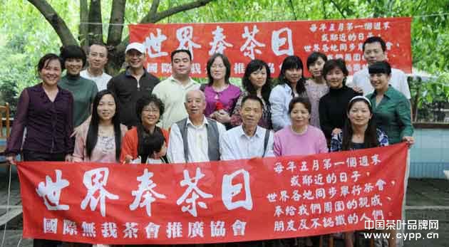 2009年5月9日,成都陆羽在四川省成都市新津县举办了「2009年世界奉茶日无我茶会」。茶会的缘起係应左世丽茶友的热情安排,我们才有此机会在风景秀丽的新津举办茶会,并邀约了当地着名茶人──碧潭飘雪创始人徐金华先生及其家人一同参加无我茶会。大家都怀着一颗感恩的心,认真摆设茶道具,发现茶友们都很用心地準备,较之以往精进许多。大家有默契地依照公告流程,忘我地进行着茶会,品茗后活动还特别邀请鲜春艳茶友朗诵了诗歌,整个茶会在融融的情谊中圆满结束。